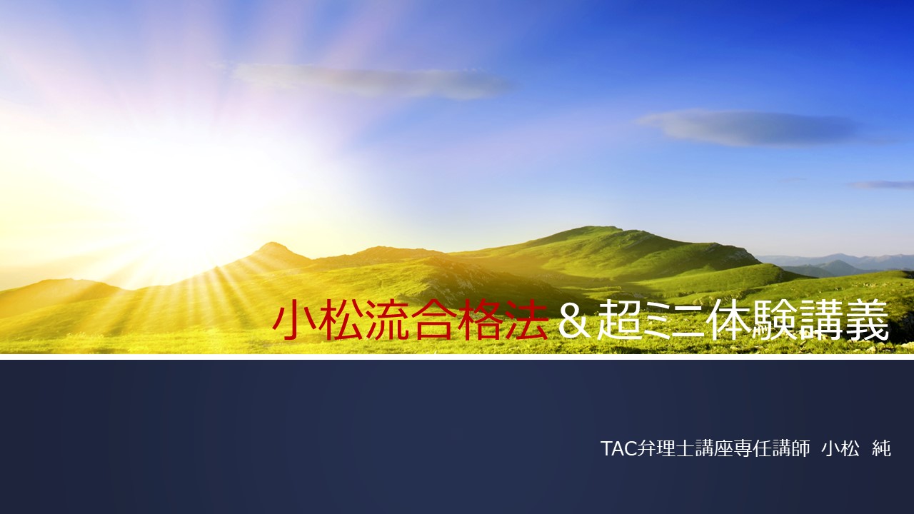 TAC弁理士講座専任講師の小松純講師が「こんなところで終わってたまるか!弁理士絶対合格法」についてお話しします。