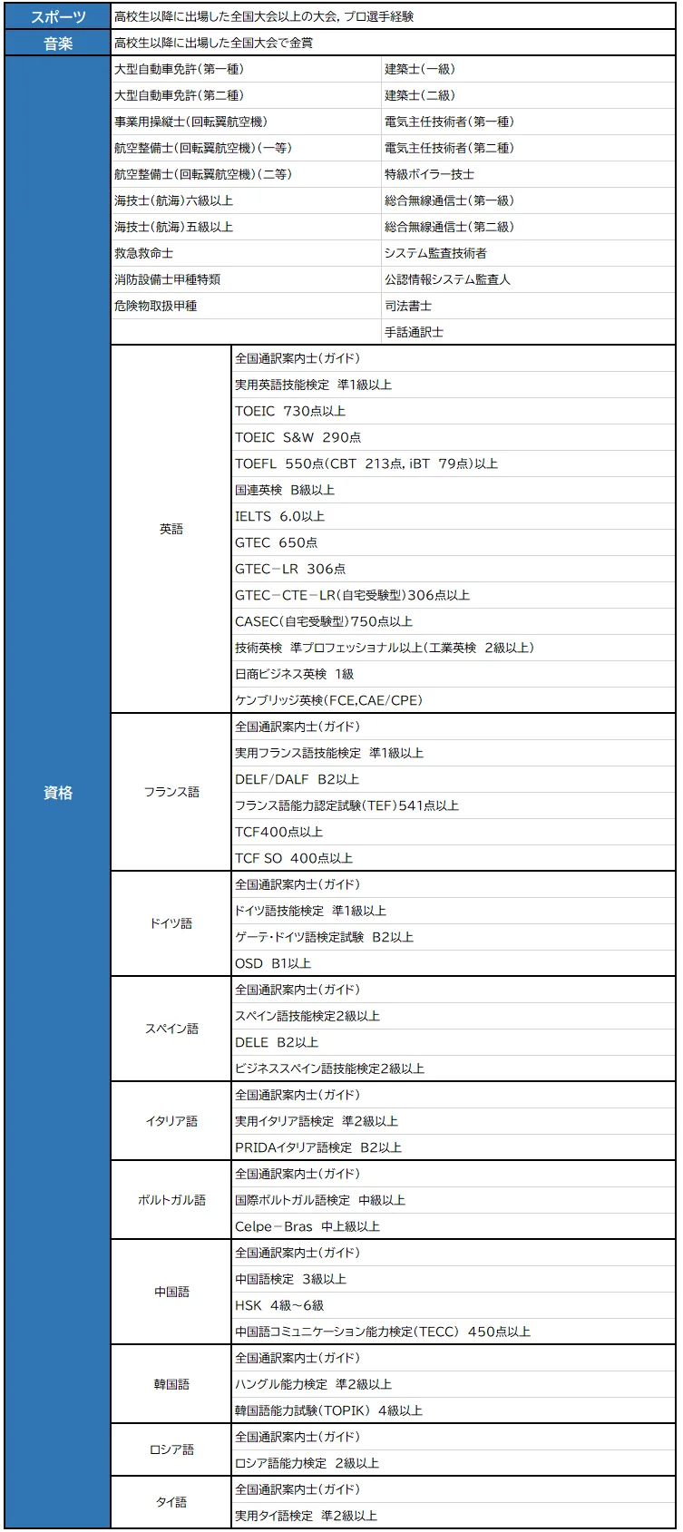 ① 有資格者や優秀なスポーツ成績を収めた人