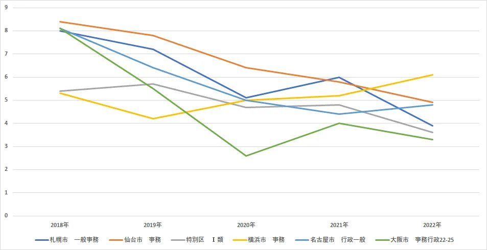 | 大阪府 行政22-25 | 6.6 | 5.9 | 3.8 | 5.0 | 7.9 |