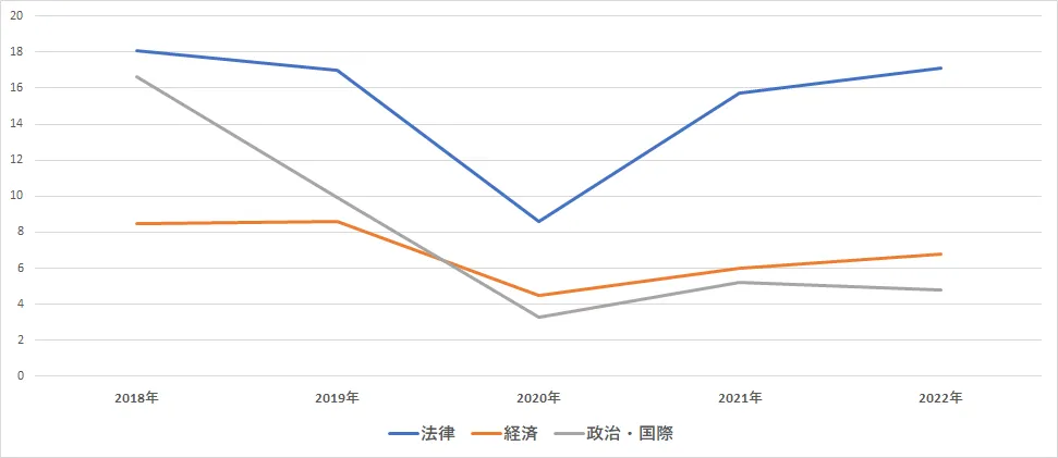 | 法律 | 18.1 | 17.0 | 8.6 | 15.7 | 17.1 |