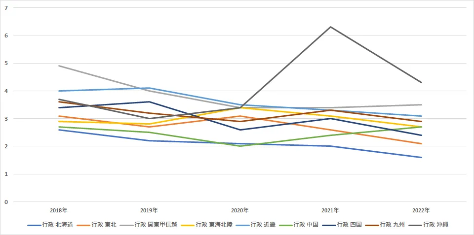 | 裁判所一般職(大卒)仙台高等裁判所 | 8.4 | 5.4 | 2.4 | 3.5 | 3.4 |