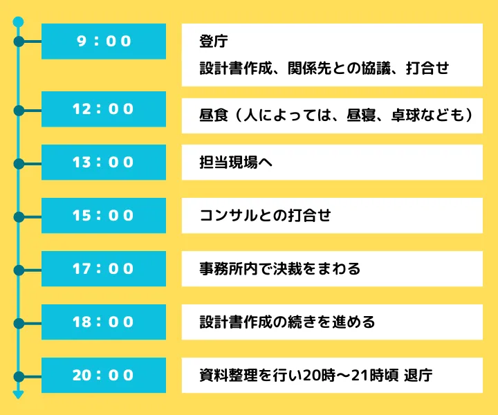 事務所は現場に出る機会が多く、本庁は打ち合わせや会議資料作成が多い傾向がある