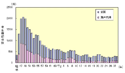 昭和40年代の高度成長期には、工場排水、船舶からの廃油排水などが海に捨てられ、汚染は深刻化していた。図2のように膨大な汚染が東京湾、瀬戸内海で多数発生していた。海洋汚染防止法がつくられ、タンカーの2重底化、油水分離器の義務化などを行い、現在のようにきれいな海に戻ってきている。(図:海洋汚染発生状況(環境省HPより))