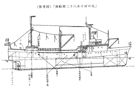 (図:第28あけぼの丸(北洋トロール漁船)の設計図(国土交通省HPより))
