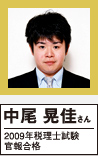 ![]() 税理士 小林 誠さん | 私は、就職先として金融機関や事業会社の財務・経理など数字を扱う職種にしぼって就職活動を行いました。就職活動を行った際は、1科目も合格していない状況でしたが、「税理士の勉強をしている」ということで、財務・経理の仕事に関心を持ったきっかけから就職先の希望までを筋道立てて説明することができました。特に、新卒の就職活動は自分が何に興味を持っていて、それに対してどのように取り組むかといった「姿勢」を問われることが多いので、資格の勉強というのはその姿勢をアピールできる一つの材料になるのではないでしょうか。 |